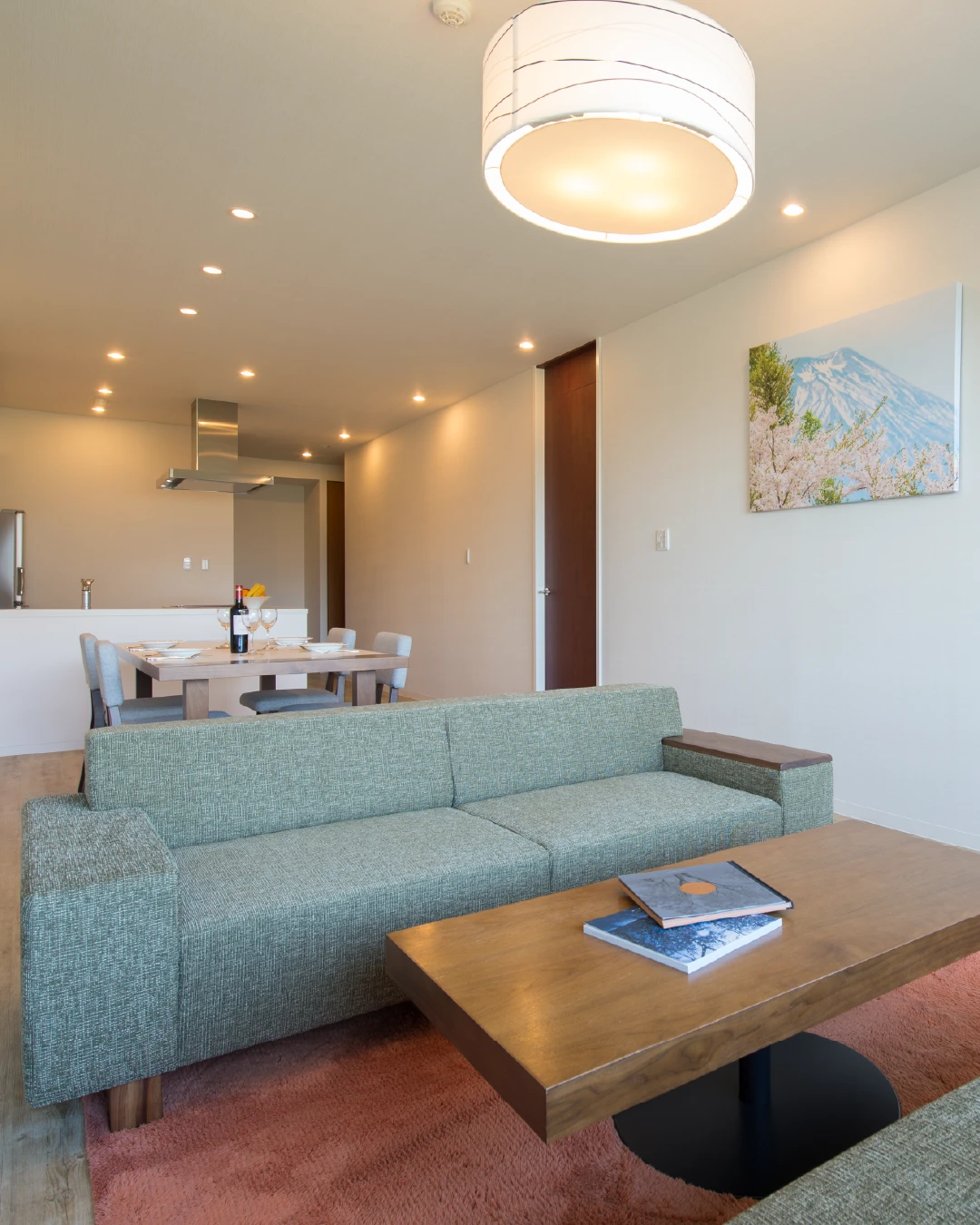 Deluxe apartments on levels 1, 2 & 3 have tree line–obstructed views of Mt. Yotei, with a few units having partial or full Yotei views. Premium apartments on level 4 have mostly unobstructed views, while levels 5 & 6 have protected views of Mt. Yotei.