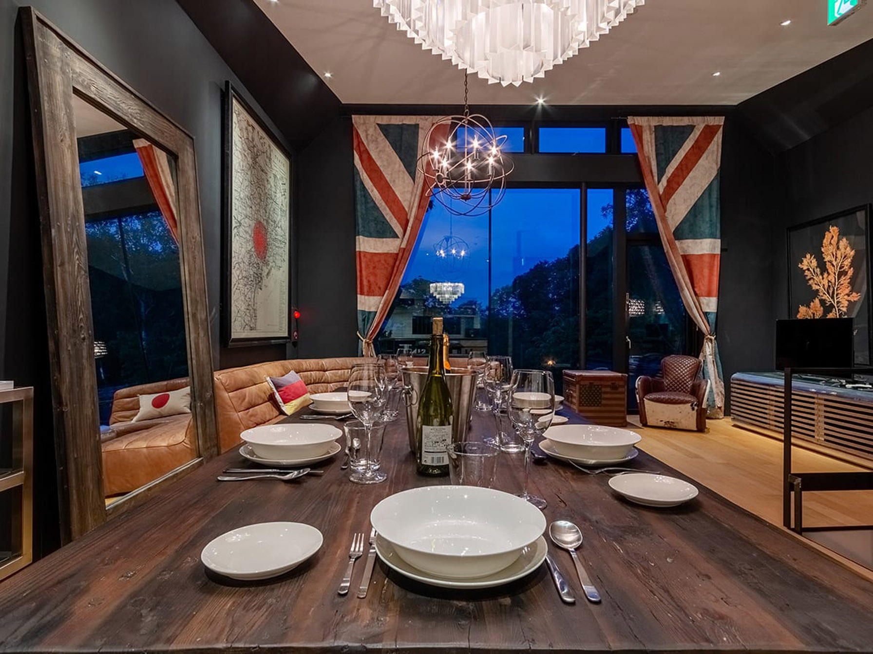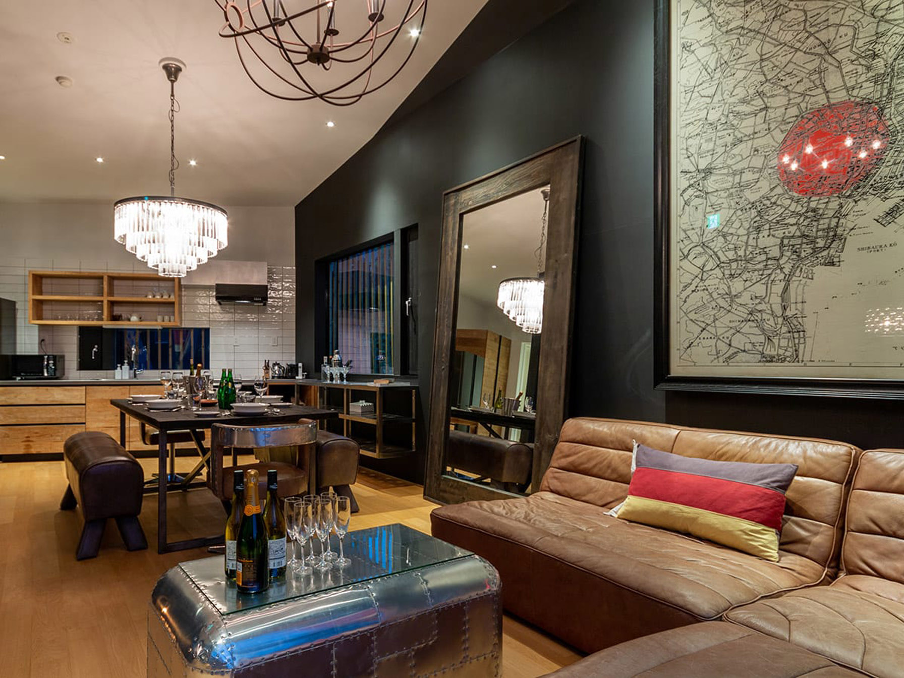 Millesime Chalet is a distinctive designer retreat that brings a touch of rock-’n’-roll flair to Hirafu. Furnished throughout with the Timothy Oulton collection, it combines bold character with refined mountain living. It’s a place where vintage leather, aged wood, and rich textures meet the quiet beauty of Niseko’s alpine landscape.