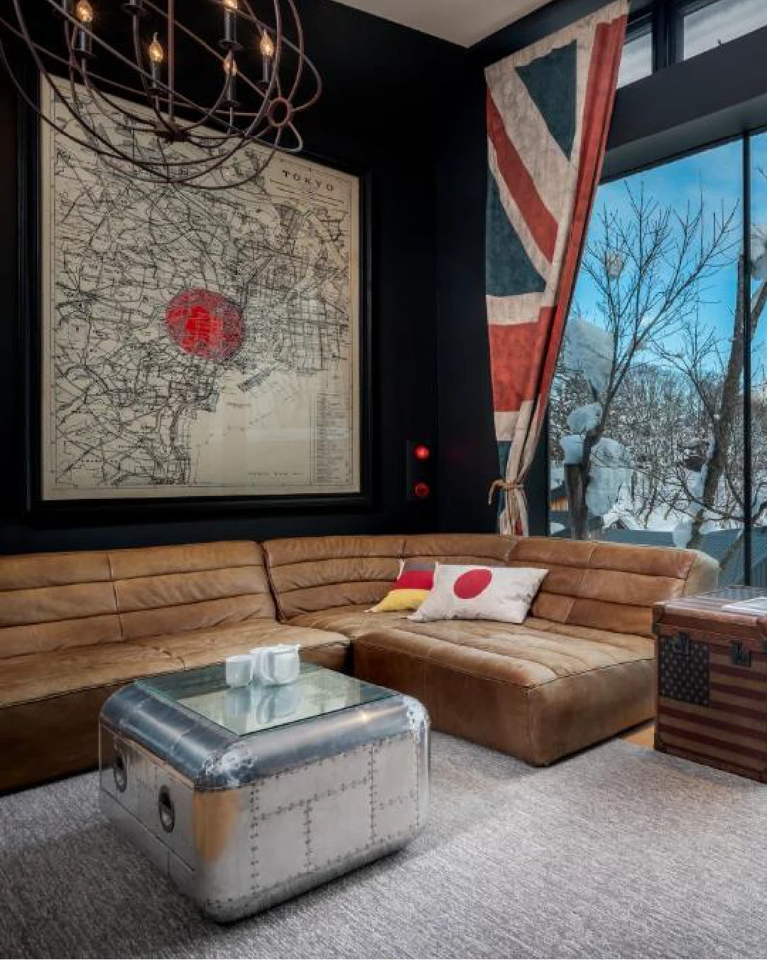 Millesime Boutique Chalet blends refined mountain living with rock-’n’-roll style. Featuring the Timothy Oulton collection, this unique Hirafu retreat pairs vintage leather and rich textures with sweeping Mt. Yotei views.