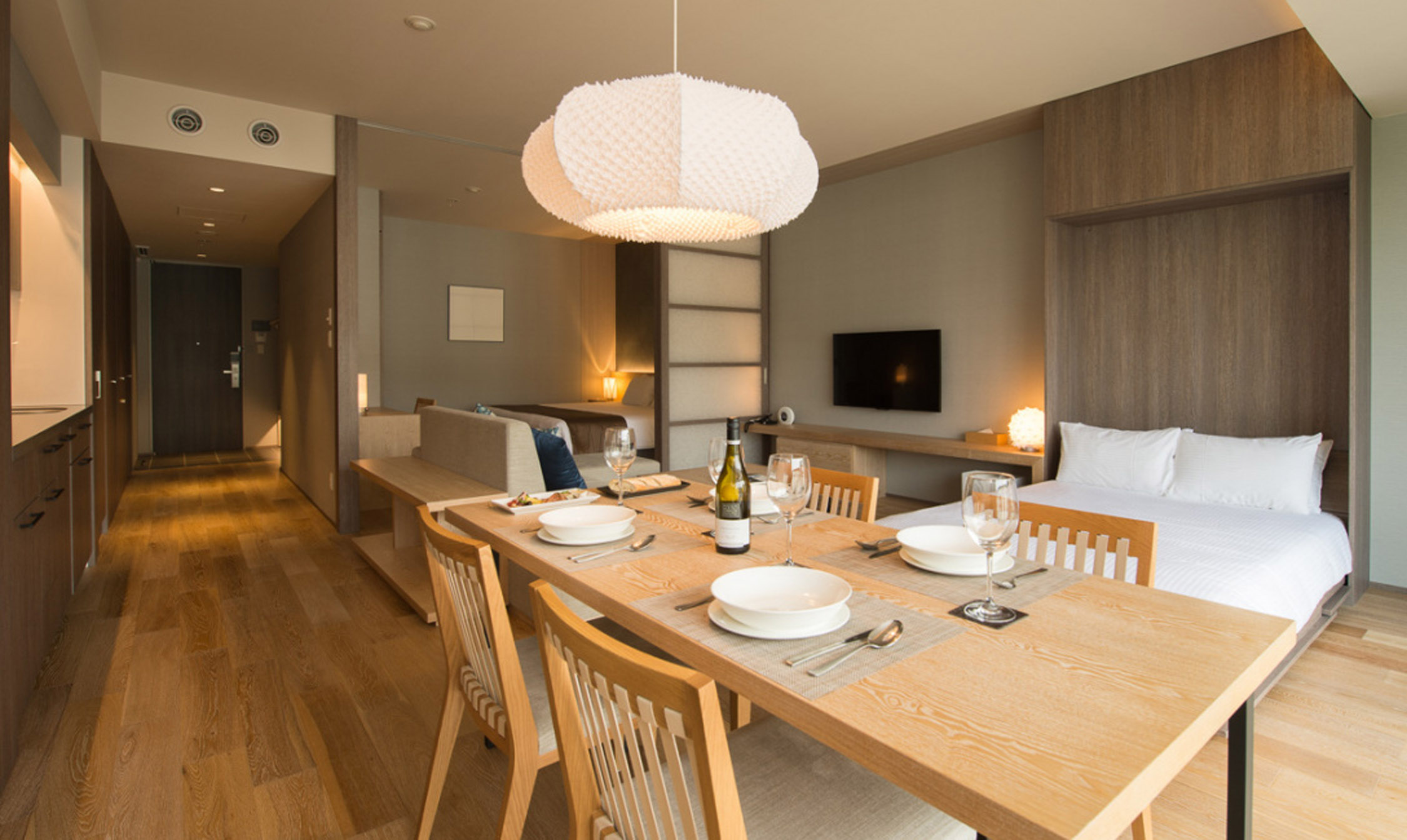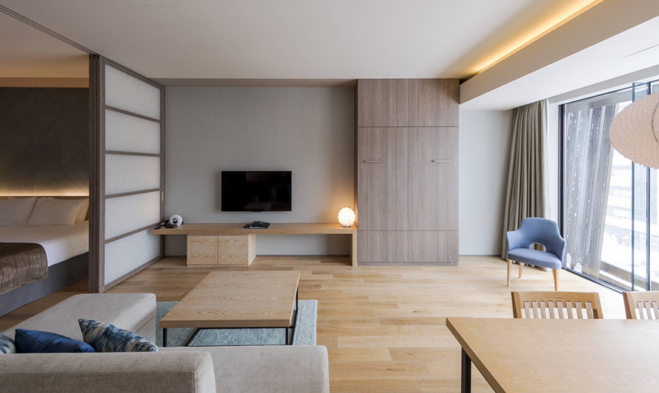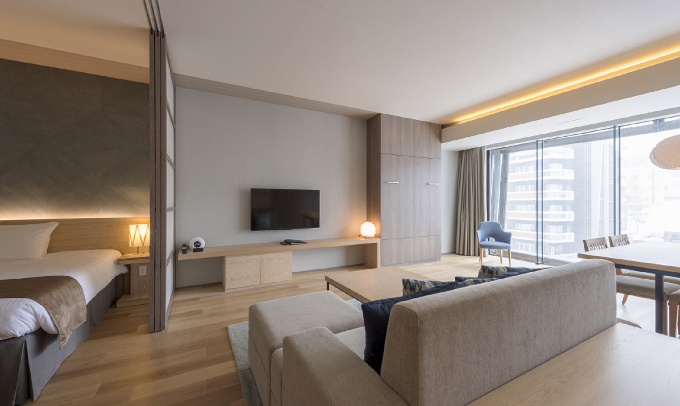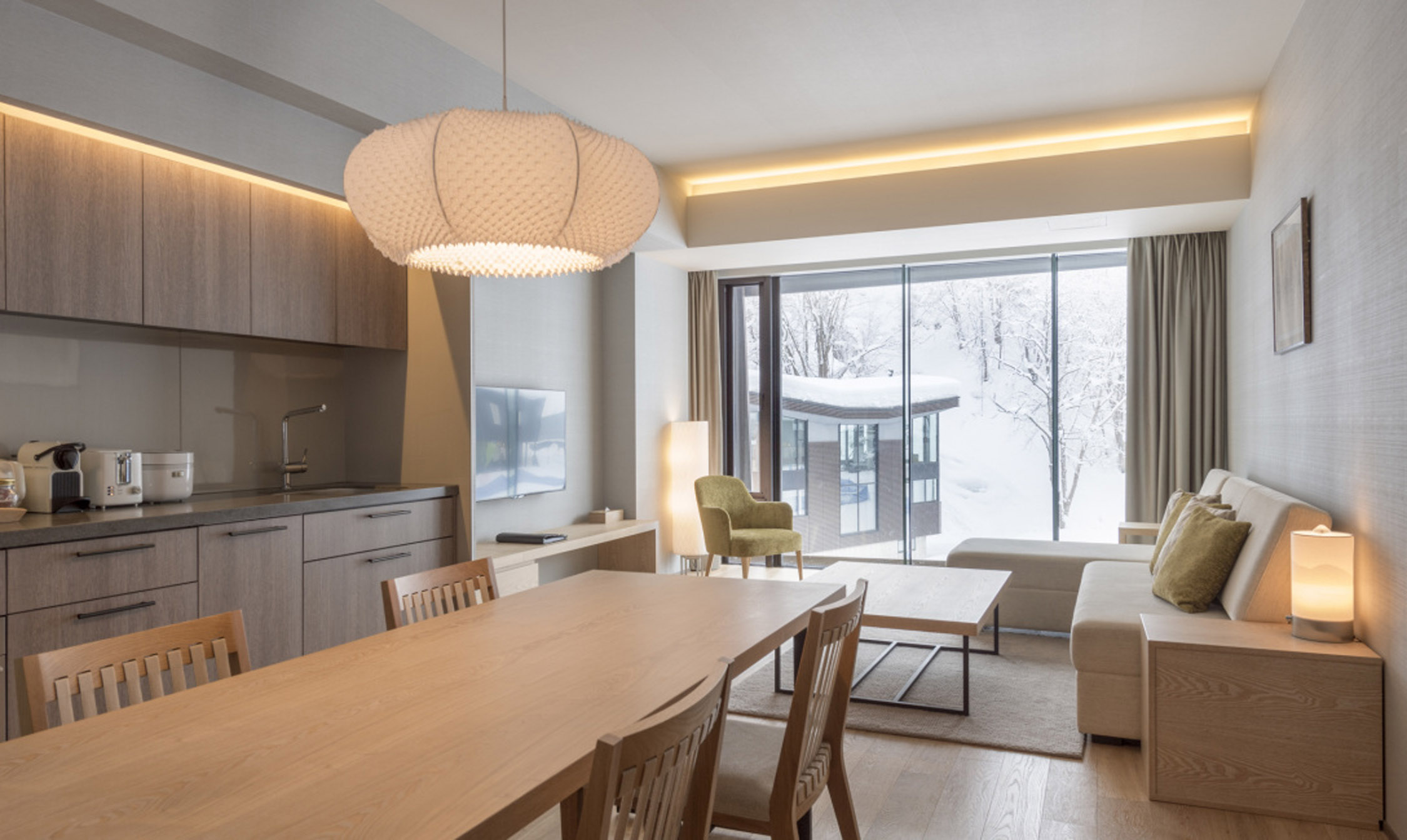 日本百名山に選定される羊蹄山の景勝を望むスキーリゾートに、ワンランク上の寛ぎをご提供するホテル型コンドミニアムが誕生しました。 豊かな緑あふれるサマーシーズンには、トレッキングやラフティング、ゴルフ等、大自然を楽しみ、ウインターシーズンにはスキーイン・スキーアウトの出来る最高の立地で極上のパウダースノーをお愉しみいただけます。 館内はスタイリッシュモダンでありながらも木のぬくもりや和のテイストが和む心地良い空間。 洗練された寛ぎの客室は多彩なタイプをご用意。 長期滞在でも快適に過ごせるよう、リビングダイニングやキッチン、独立したベッドルームを配した、ゆとりのある空間。また、天然温泉を満喫できる大浴場や露天風呂、プライベートにお愉しみいただける家族風呂もご用意しております。
