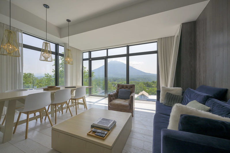 開放感のあるガラス張りの最上階のリビングからは、秀峰羊蹄山と大きな空を眺めなることができます。