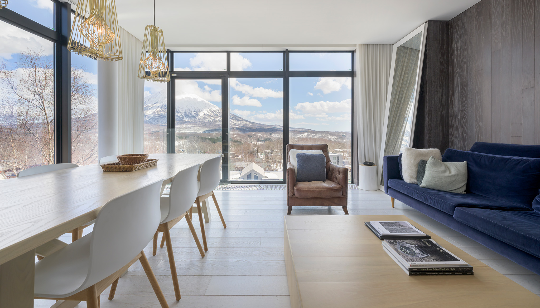 ひらふミドルエリアに建つデザイナーズコンドミニアム。ワンフロア1室の快適な造り。白を基調とした北欧デザインで整えられた3LDK。リビングルームに配された床から天井まで一面に広がる雄大な大自然は圧倒的な開放感。 洗練された空間と機能性に優れた充実設備のロフトニセコは、記念日旅行など特別な日を彩るに相応しい。