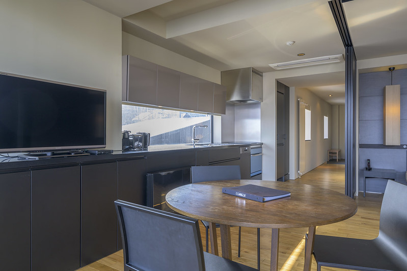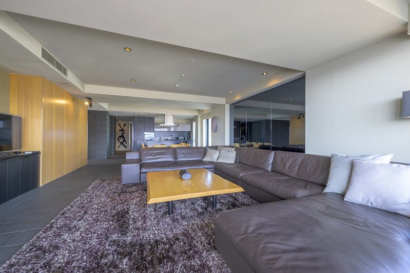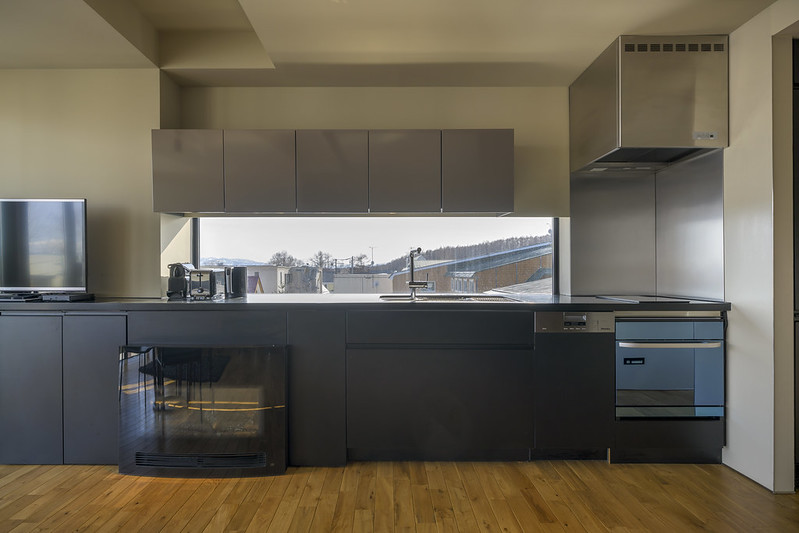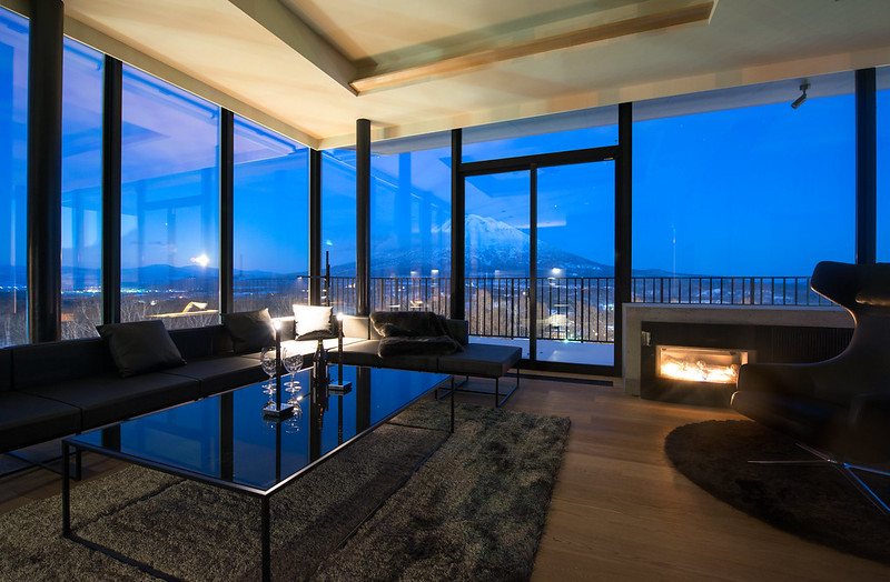 広々としたリビングルームからは羊蹄山の素晴らしい景色をお楽しみいただけます。オープンキッチンの鉄板テーブルでワンランク上のホームパーティーを。