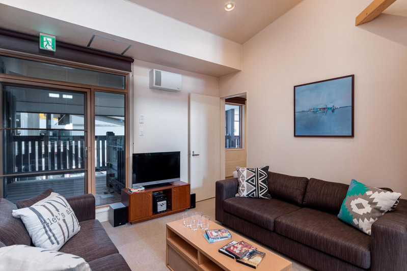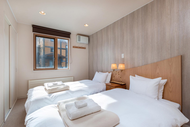 ヒラフエリアの中心に建つ、人気の2階建てメゾネットタイプ、全16戸。黒を基調とした木のぬくもりあふれる外観は、夏は緑にとけ込み、冬は白銀の世界にひときわ目を引きます。