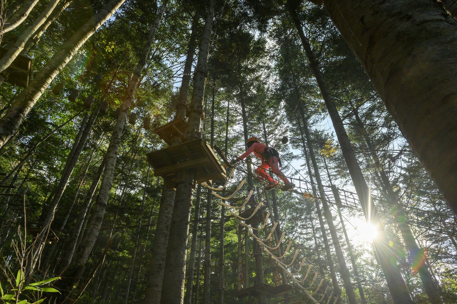 ダイナミックな森の中のアドベンチャーアクティビティ、「挑戦する」こどものたくましい成長っぷりを見ることができます!